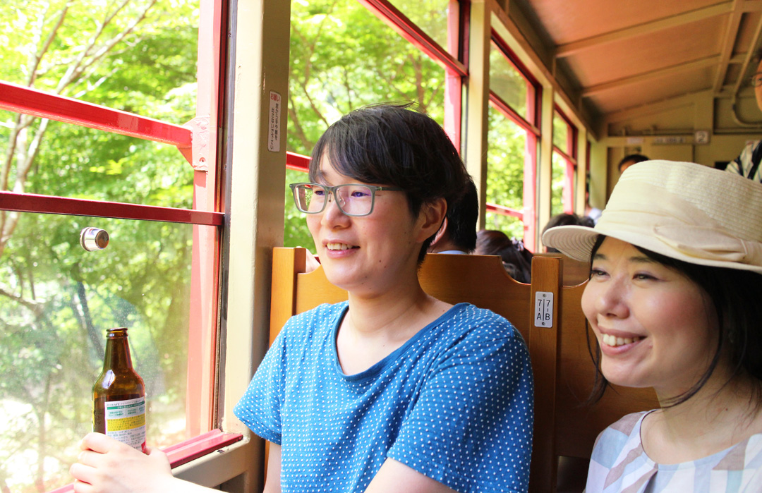 時速約25km、自転車くらいの速さで進むトロッコ。