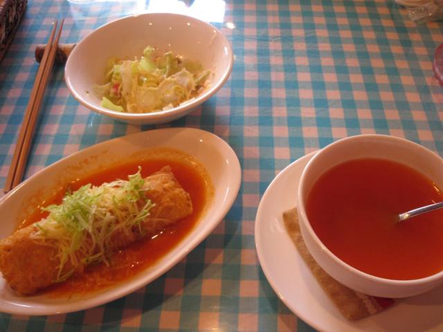 こちらはAランチ、タコスとエンチラーダス、サラダ、スープのセット