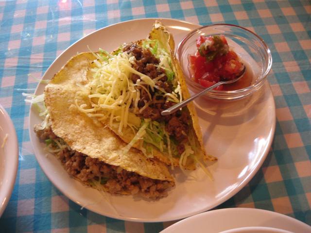 エンチラーダスはチキン、本日のタコスは牛ミンチと豚ミンチでした。