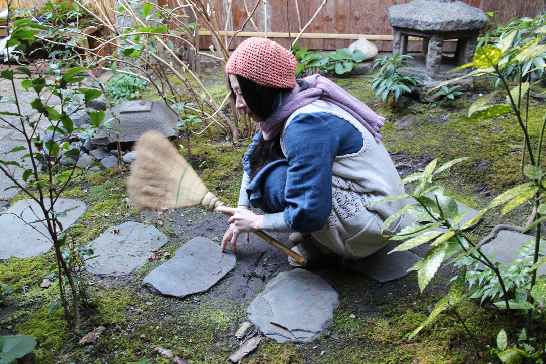 寒ても負けずにお庭に出て、雑草抜きと、箒で苔なでなで。