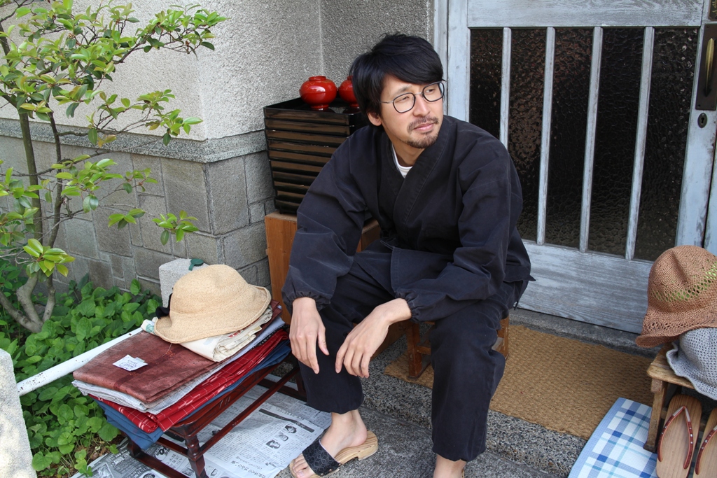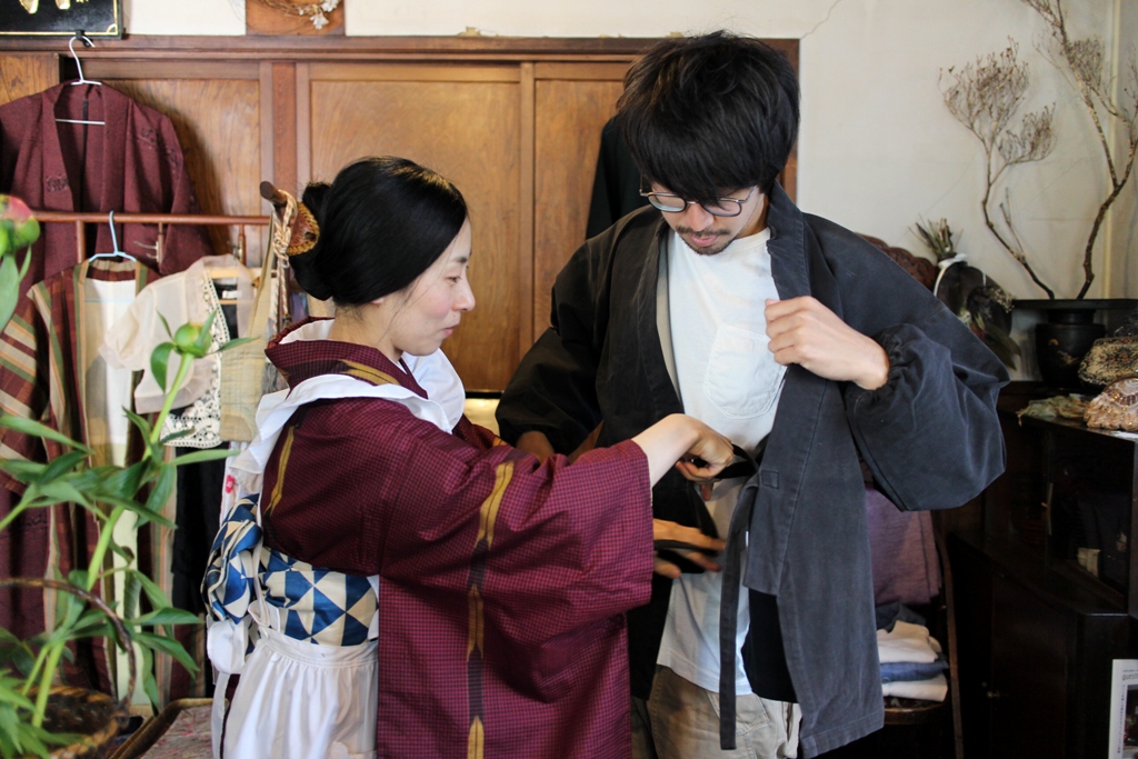 一押しの男もん作務衣を試着してもらいました。