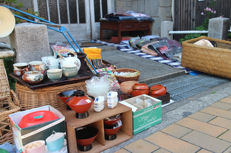 朝ごはんで使っていた漆塗りの御膳や、食器などの骨董もどどーんと大放出!
